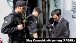 Через несколько минут из здания стали выходить те, кто там оставался до последнего: Шевкет Кайбуллаев, глава Секретариата Меджлиса Дилявер Акиев и ряд сотрудников.