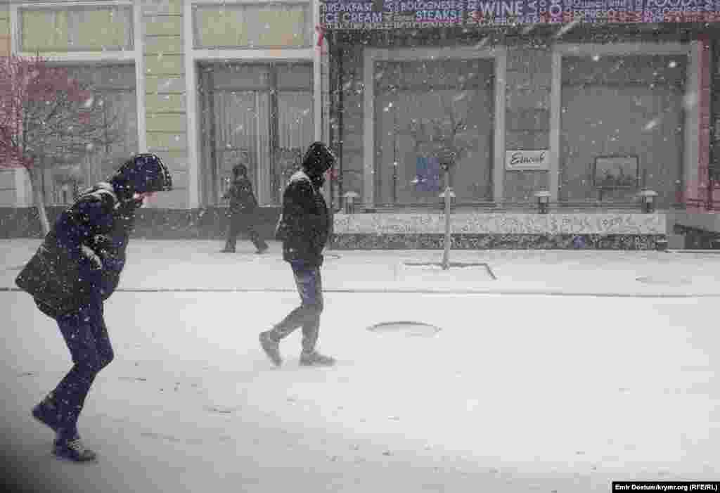 В середине первого месяца весны Симферополь засыпало снегом. На улицах города гололед, пешеходы передвигаются с трудом, а многие автомобилисты предпочли не ездить в такую погоду.