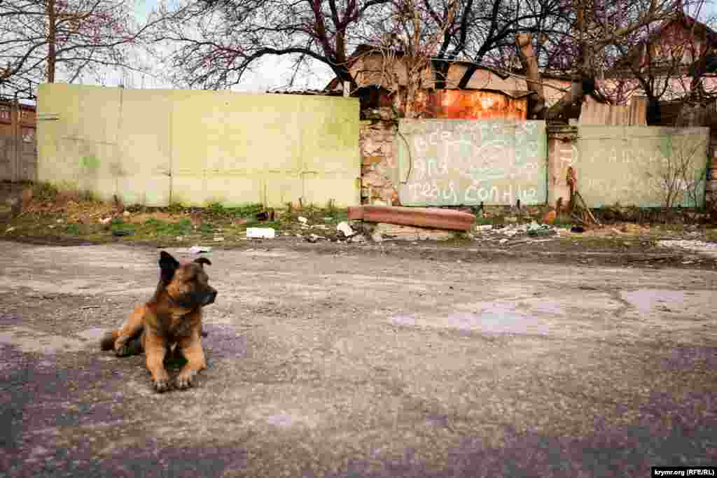 Периодически попадаются закрашенные проукраинские надписи на стенах.