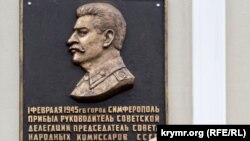 8 мая в Симферополе на фасаде одного из домов установили мемориальную доску с профилем Сталина. Она должна напоминать о краткосрочном визите этого человека – он останавливался в городе по пути в Ялту, где должен был встречаться с Рузвельтом и Черчиллем. В Ялте памятник Сталину поставили уже несколько месяцев назад.