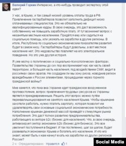 Интересен вопрос Валерия Горкина про экспертизу данного предложения российского главы Крыма. Ведь 11 августа сего года при главе Крыма создан Экспертно-консультативный совет, куда вошли 28 экспертов в своей сфере. О чем сообщается на сайте российского правительства Крыма. Наверняка крымчанам было бы интересно узнать мнение этого органа по данному вопросу. Но, зная характер Сергея Аксенова, не стоит питать больших надежд, что экспертное мнение будет иметь большой вес для него при принятии решений, потому что вокруг него уже сложилась группа влияния из числа «команды победителей», и, скорее всего, как и прежде, именно нужные им решения и будут приниматься крымским главой.