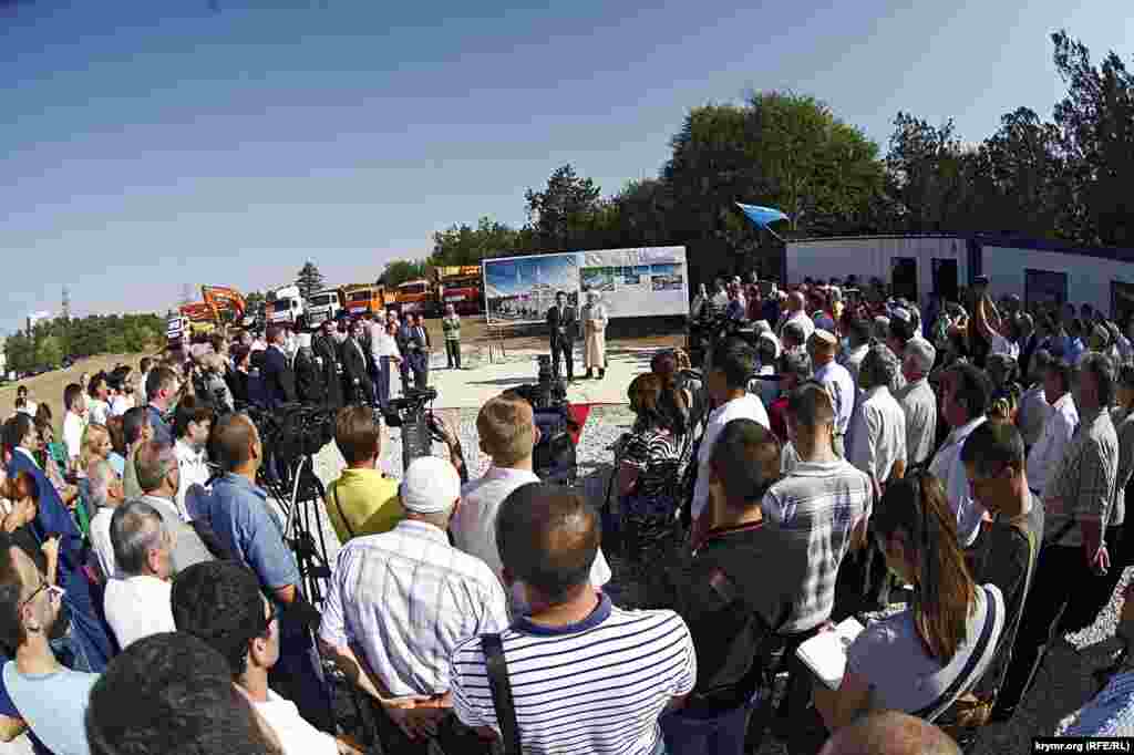 В Симферополе 25 сентября, во второй день праздника Курбан-Байрам, муфтий Крыма Эмирали Аблаев и руководители российских властей Крыма провели торжественное собрание, посвященное началу строительства Соборной мечети. Митинг начался с задержкой на час.