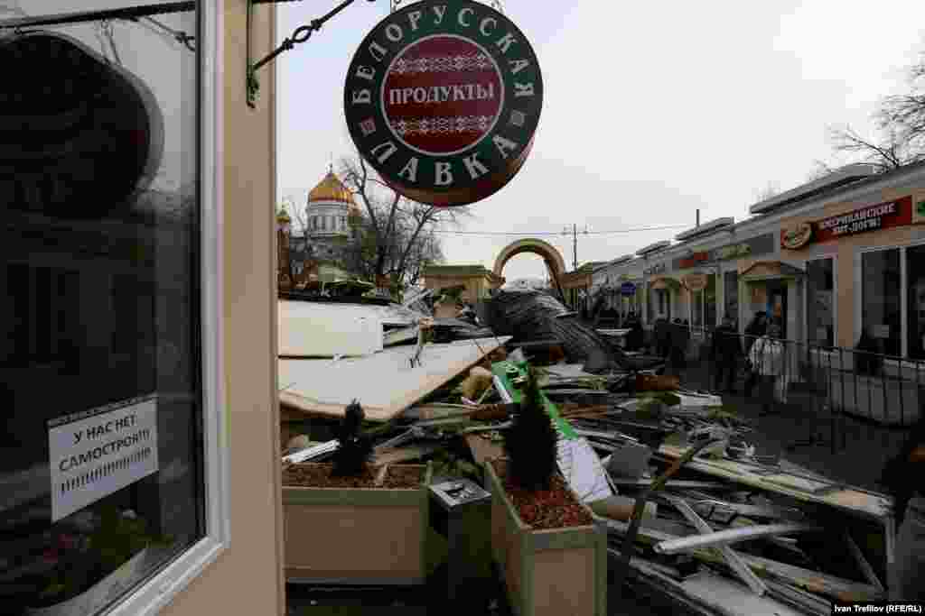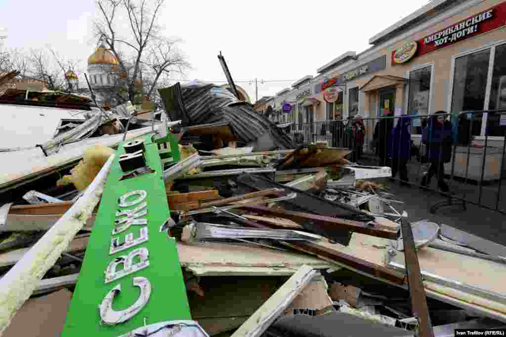 В ночь на вторник, 9 февраля, московские власти начали принудительный демонтаж торговых павильонов. Всего было снесено около 100 объектов у станций метро. Свои действия правительство столицы объяснило тем, что они являются «самовольными строениями», «угрожающими безопасности жителей города».