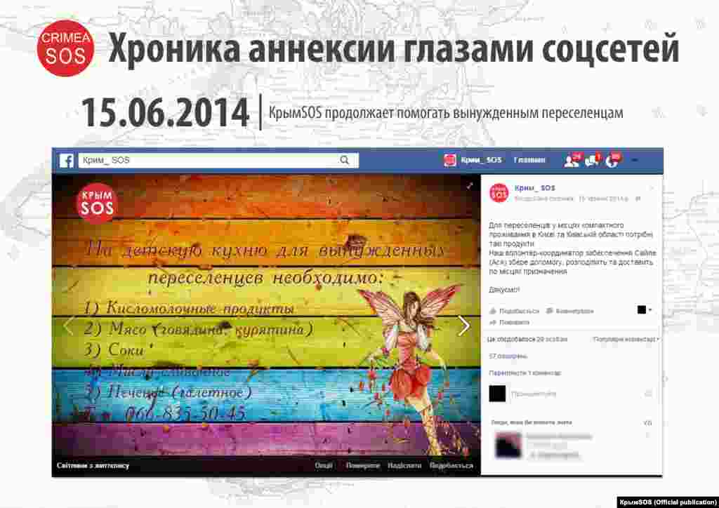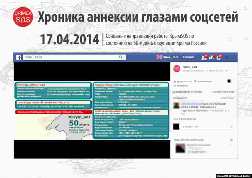 Галерея «хроники» представлена 28 работами – facebook-постами КрымSOS за период с 27 февраля по 2 июля 2014 года. Отобранные по принципу важности и влияния на последующий ход событий, они тем самым воскрешают хронику оккупации Крыма.