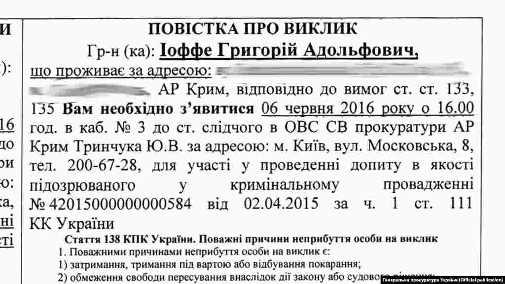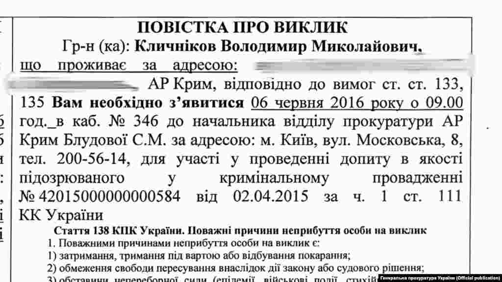 Генпрокуратура Украины опубликовала повестки бывшим и нынешним крымским депутатам и чиновникам