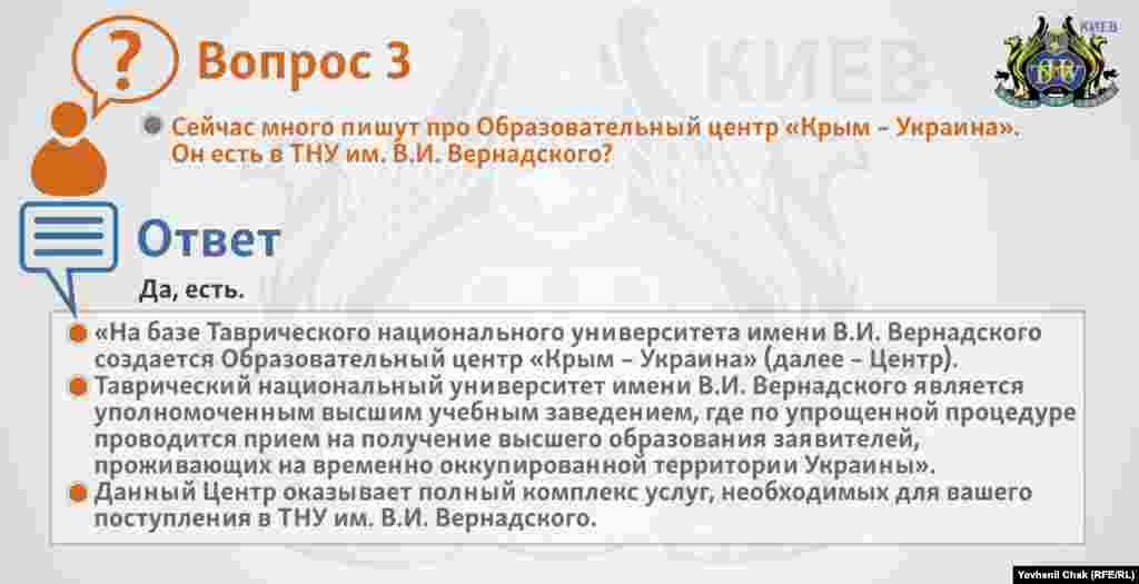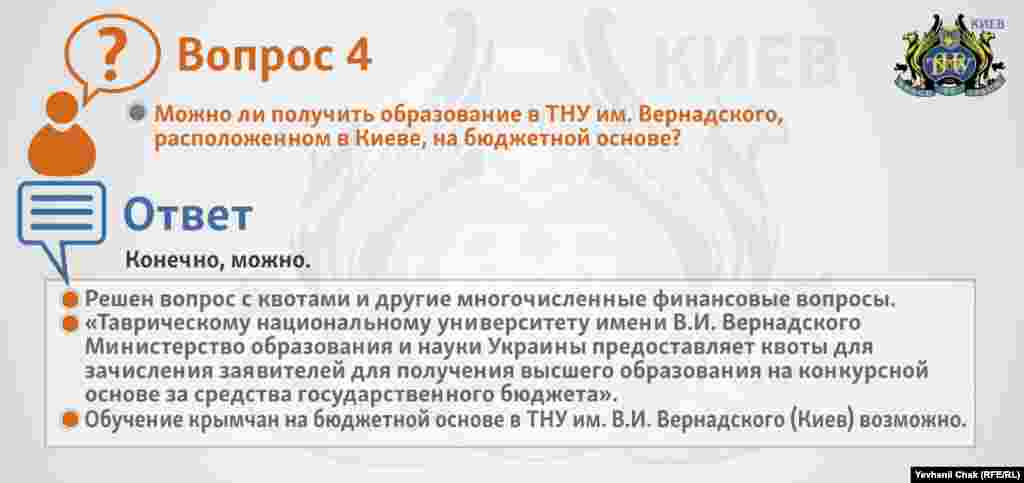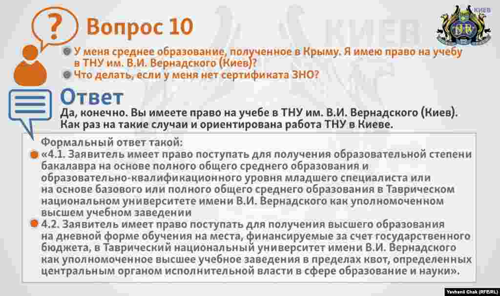 Вновь созданный в Киеве Таврический национальный университет имени В.И. Вернадского открывает двери для абитуриентов. Мы подготовили ответы на топ-10 самых популярных вопросов, которые интересуют крымчан, решивших поступить или перевестись в ТНУ в Киеве.