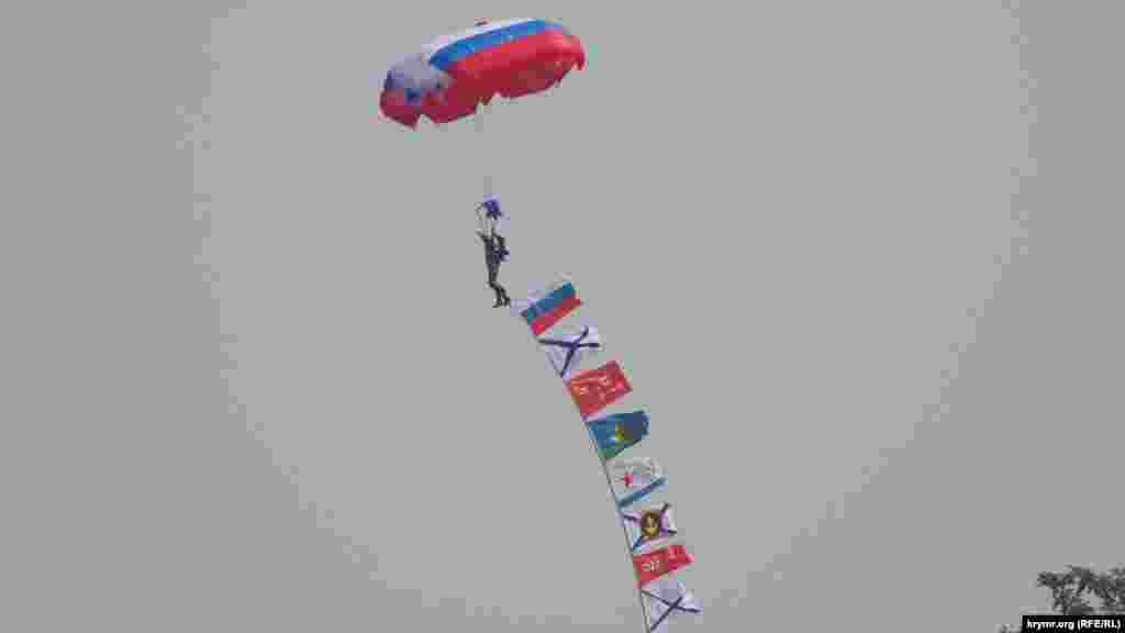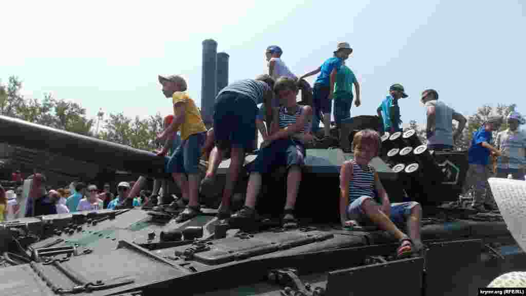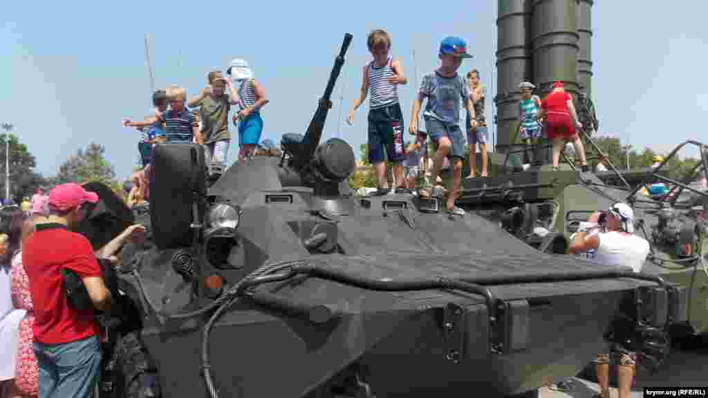 В аннексированном Севастополе 31 июля отмечают День военно-морского флота Российской Федерации. В рамках празднования провели военно-спортивный праздник с поднятием флагов над кораблями, высадкой десанта, парада военных кораблей и театрализованного представления в исполнении парашютистов с флагами. Стандартная программа. Кроме того, на площади Нахимова, в центре города, проходила выставка военной техники российской армии: от противопехотных мин до зенитно-ракетных комплексов.