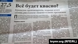 «Крымская газета» в статье «Все будет квасно?» приводит мнения крымских производителей кваса об итогах сезона и их претензиях к властям. В редакцию обратился читатель с просьбой проверить торговые точки с разливным квасом на предмет нарушения технологии его содержания и продажи. Газета провела небольшое расследование, но ничего подозрительного в оборудовании – мобильной барной стойке с зонтиком – не обнаружила. В Роспотребнадзоре, куда обратилось издание, ответили, что жалоб на квас не поступало. «Крымская газета» поинтересовалась, кто торгует квасом в крымских городах.