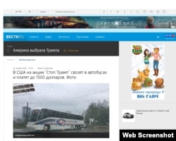11 ноября российский интернет взбудоражила новость о том, что в США демонстрантов, выступающих против избранного президента Дональда Трампа, "свозят на автобусах" и платят им до 1500 долларов в неделю. Новость активно поддержало российское телевидение. "Вести" до сих пор держат эту информацию на своей странице.
