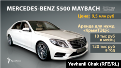 Договор аренды автомобиля Mercedes-Benz S 500 Maybach 2015 года выпуска был подписан в начале апреля по результатам процедуры закупки услуги у одного поставщика. Крым.Реалии располагают копией договора и протоколом торгов.