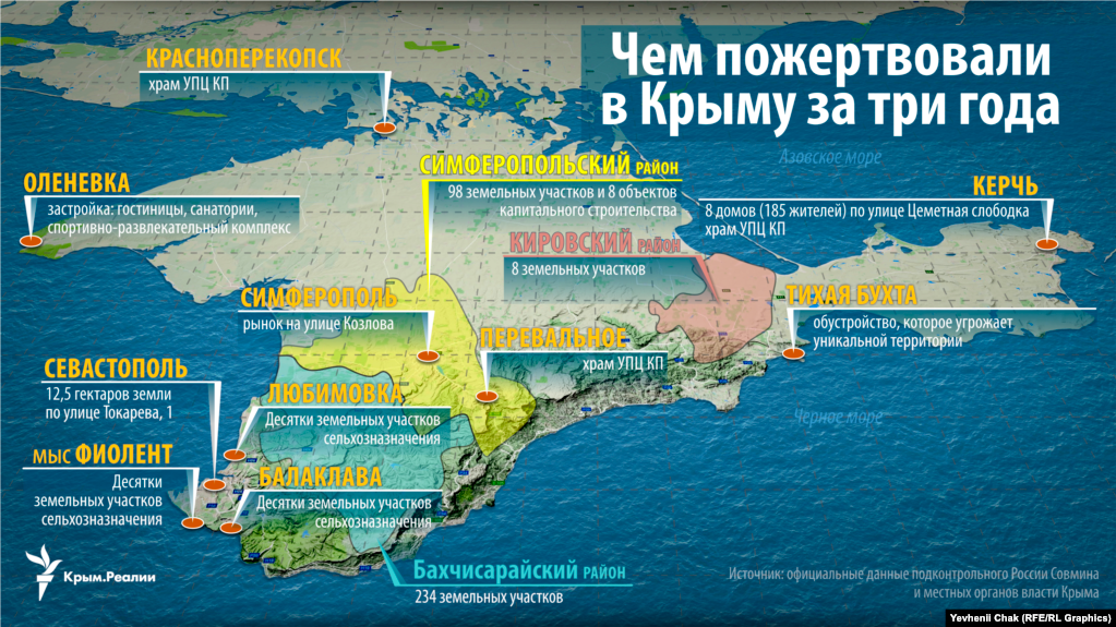 Кстати, об утерянной недвижимости. После аннексии многие жители полуострова лишились собственности. Забирали и забирают ее ради крупных российских проектов: от Керченского моста до указанной выше «Тавриды». Чем уже три года жертвуют крымчане – в нашем разборе.