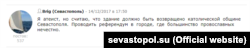 Не все думают так. Например, пользователь Brig (Севастополь) заявляет: «Я атеист, но считаю, что здание должно быть возвращено католической общине Севастополя. Проводить референдум в городе, где большинство православных нечестно».