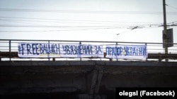 Символично активисты в Киеве поддержали самого Балуха – вывесили в Киеве баннеры со словами «Free Balukh – заключенный за флаг Украины».