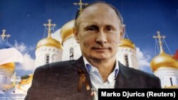Сторонник российского президента Владимира Путина целует его портрет. Белград, 17 января 2019 года