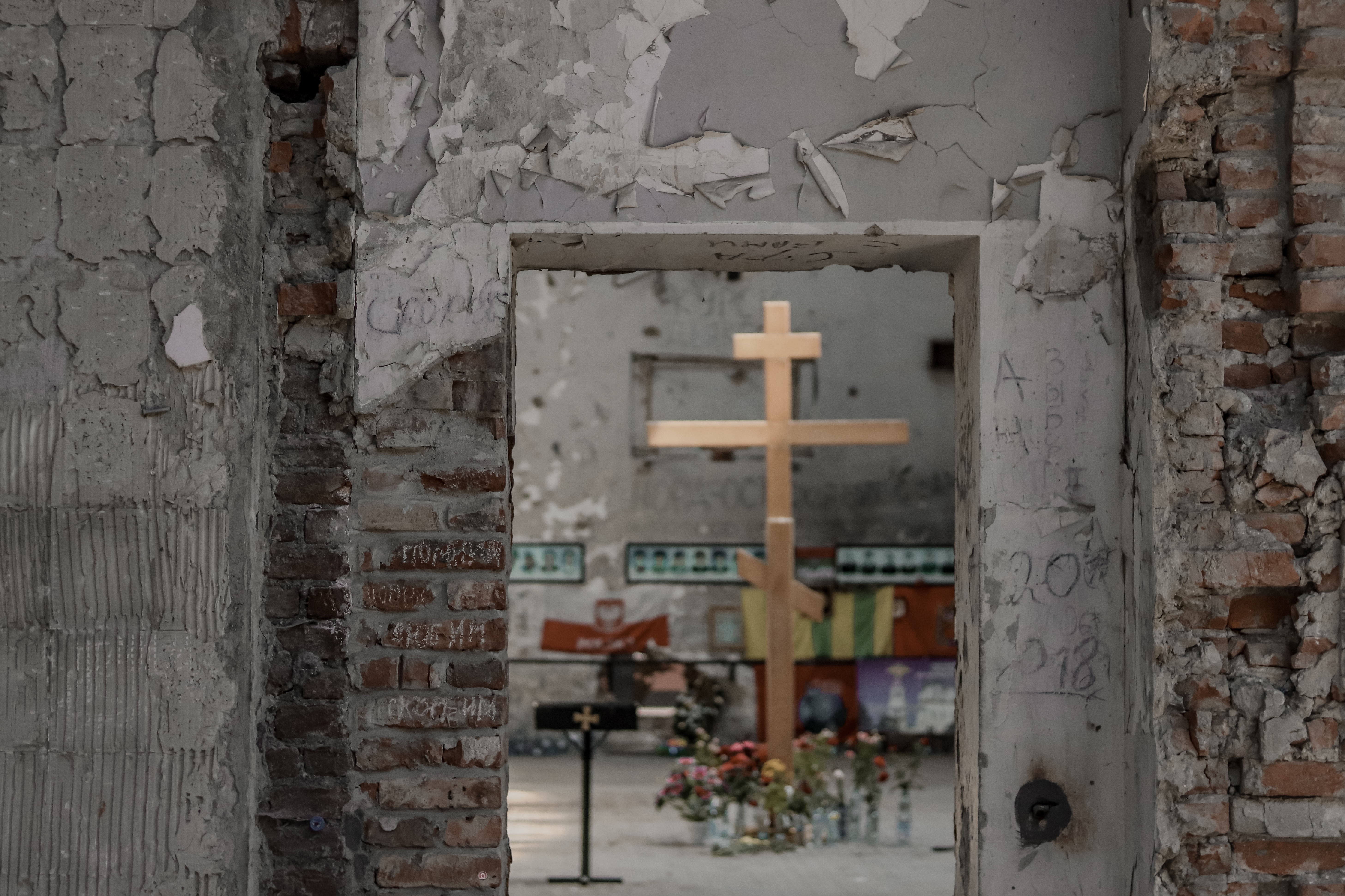 На выходе из школы нас останавливает охранник: «Снимать можно! Заходить нельзя! Там падает всё, со сводов падает», — предупреждает он нас. А потом, чуть тише, уже скорее себе: «Если бы они хоть рамы оставили», – и запирает ветхую дверь школы наглухо.