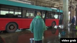 "Первым делом мы делаем влажную уборку в салоне, потом мойщица протирает уже водой со средством дезинфицирующим – именно против этих всех вирусов, – поясняет Иван Зайчук, начальник участка технического обслуживания троллейбусного управления. – После этого обрабатываем салон, вы видели, из баллона, другой работник ходит и обрабатывает салон троллейбуса".