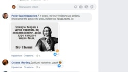 «А я знаю, почему публичные дебаты отменили! Не рискнули дурь публично предъявить», – написал в комментариях Ринат Шаймарданов из пророссийского объединения «Милли Фирка».