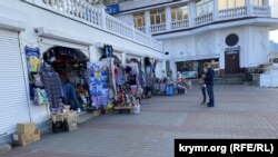 Без ограничений работают продуктовые магазины, магазины одежды и киоски с сувенирами. На набережной людей зазывают на морские прогулки по Севастопольской бухте.