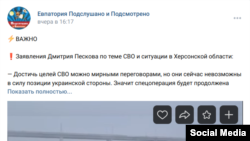 В сообществе «Евпатория Подслушано и Подсмотрено» размещено заявление Дмитрия Пескова, пресс-секретаря российского президента, и видео под названием «Отход российских военных».