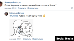 В сообществах, связанных с обсуждением происшествий на полуострове, также идет яростная полемика насчет решения военного руководства России сдать Херсон.