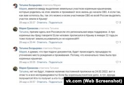 «Имеется в виду выделение земельных участков коренным крымчанам, которые родились на этих землях и проживают всю жизнь до начала «СВО». А если так, как вам хотелось бы, так это можно и всем участникам «СВО» из всей России выделить участок земли в Крыму!» – отвечает ей Татьяна Болдырева из Феодосии.