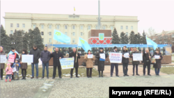 В Херсоне на главной площади города прошел флешмоб, приуроченный ко «Дню сопротивления Крыма российской оккупации». Как сообщает корреспондент Крым.Реалии, его участники пришли с плакатами, призывая освободить украинских политзаключенных и «прекратить оккупацию полуострова».