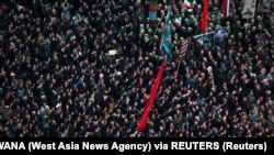 Десятки тысяч иранцев 5 января приняли участие в траурной процессии в честь начальника сил «Кудс» генерала Касема Сулеймани, убитого в Ираке, информирует Радіо Свобода.