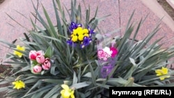 Как сообщает корреспондент Крым.Реалии, уже к полудню у памятника лежало несколько букетов цветов, один из них – в желто-синей цветовой гамме.