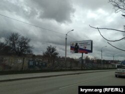 На рекламных конструкциях остановок общественного транспорта и билбордах размещают изображения российского президента Владимира Путина или российского военного в балаклаве с большой буквой Z из георгиевских лент, сообщает корреспондент Крым.Реалии.