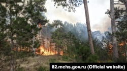 Близкий к российскому правительству Крыма ресурсу «Крыминформ» сообщил, что пожар продолжает распространяться.