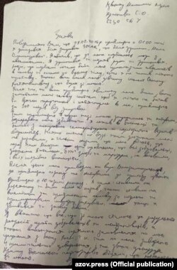 В сообщении, опубликованном на сайте «Азова» указывается, что адвокат Краснова Андрей Мамалыга также заявил, что его подзащитного после задержания пытали в лесу неизвестные лица без опознавательных знаков с автоматическим оружием.