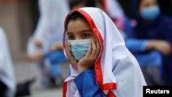 Женщины в масках молятся в Пакистане во время праздника Ураза-байрам