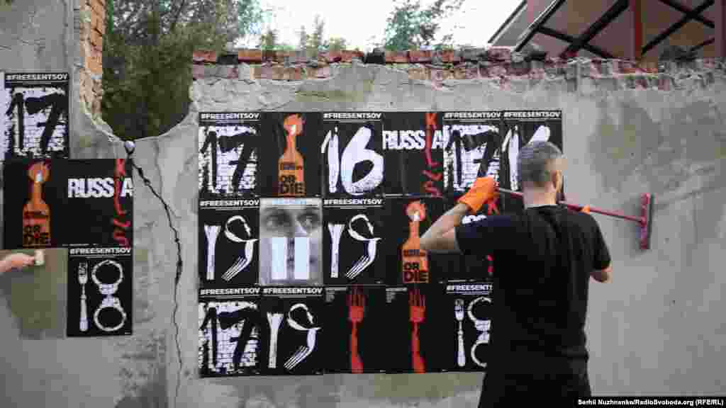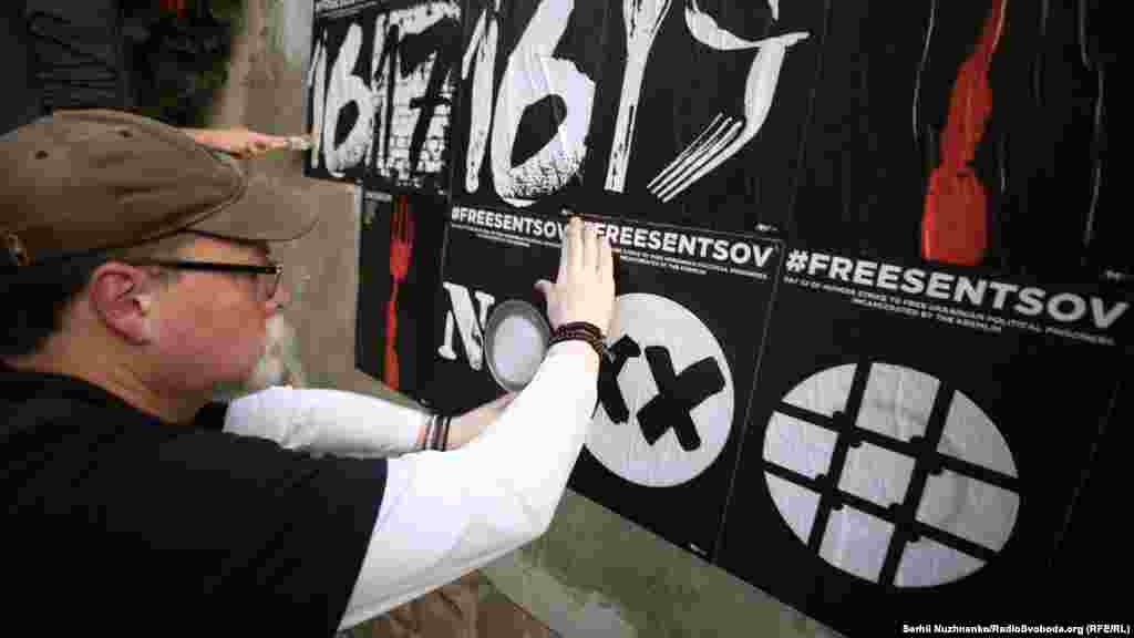 Во время акции активисты расклеили напротив российского консульства около 100 плакатов в поддержку Сенцова и других политузников Кремля. Также активисты раскрасили забор в синий и желтый цвета, написав на нем «FreeSentsov».
