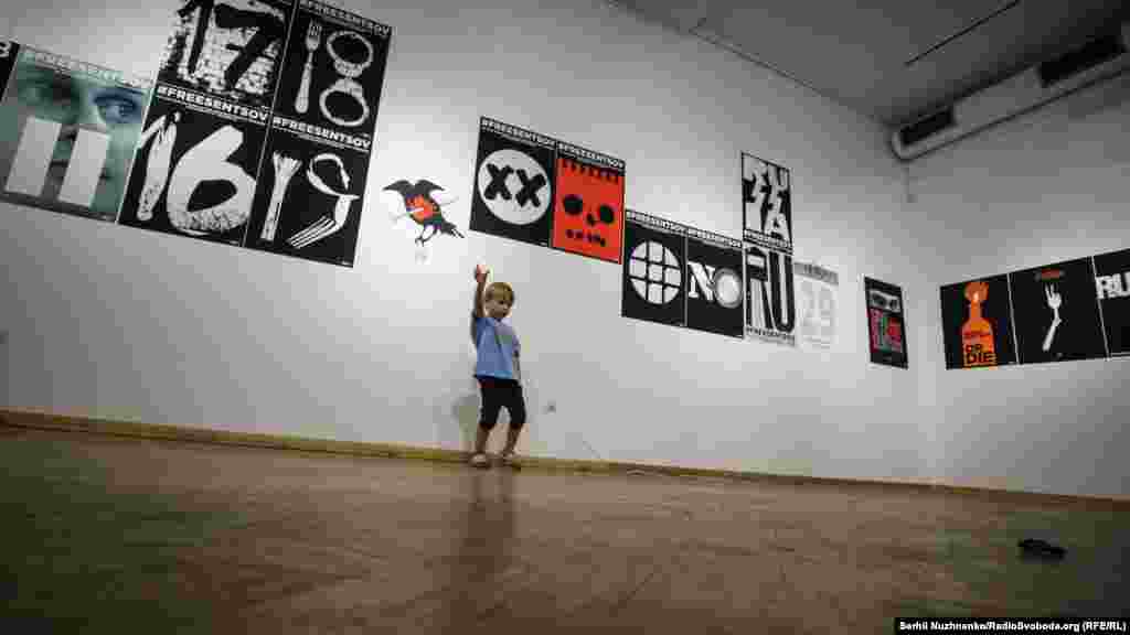 «Эта экспозиция – своеобразная антология художественных материалов, которые были созданы в поддержку Олега Сенцова. Это плакаты, постеры, картины, видео, инсталляции – своеобразный итог этих трех месяцев голодовки Сенцова», – рассказал о мероприятии кинорежиссер, один из представителей украинского творческого объединения Babylon13 Владимир Тихий.