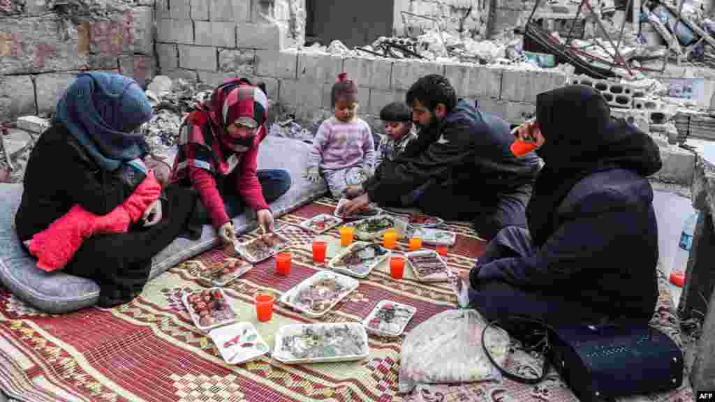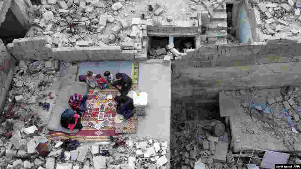 Когда над разрушенными домами сгущаются сумерки, сирийская семья из Эриха (города на юге провинции Идлиб) начинает ифтар. Прием пищи проводится после вечерней молитвы во время священного для мусульман месяца Рамадан.