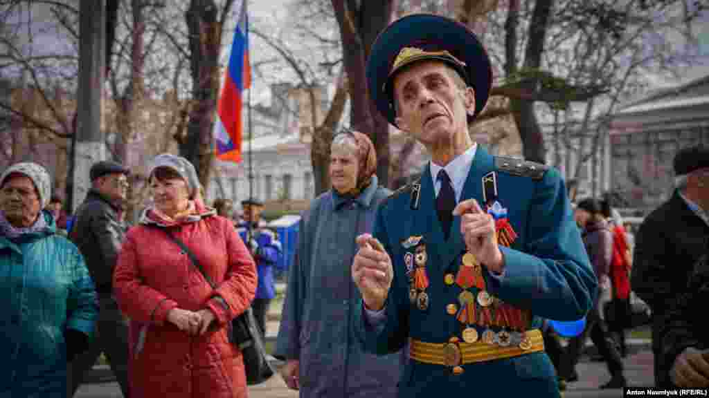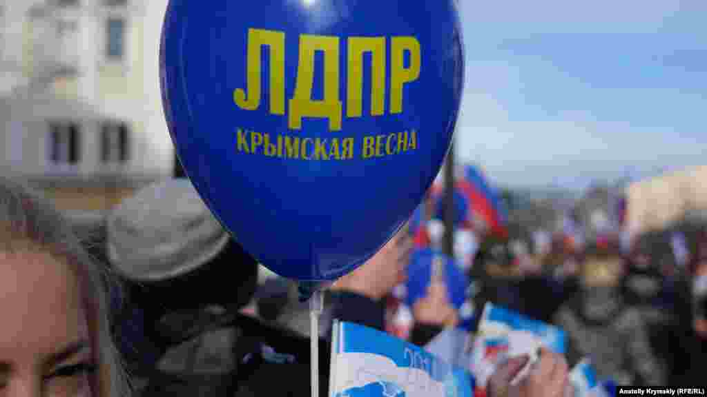 В Симферополе 15 марта прошли официальные мероприятия, посвященные пятилетию российской аннексии Крыма. В рамках празднования состоялись праздничное шествие и митинг. Торжество началось с возложения цветов к памятнику «Народному ополчению всех времен» у здания крымского правительства. В мероприятиях приняли участие глава российского правительства Крыма Сергей Аксенов, спикер российского парламента Крыма Владимир Константинов, спикер российской Госдумы Вячеслав Володин, депутаты российской Госдумы, адмирал Олег Белавенцев, который получил звание героя России за «Крымскую весну». А также руководитель «ДНР» Денис Пушилин, и экс-депутат французского парламента Тьерри Мариани. Все это время из динамиков звучало: «Крым, Россия навсегда – наша крымская победа!»