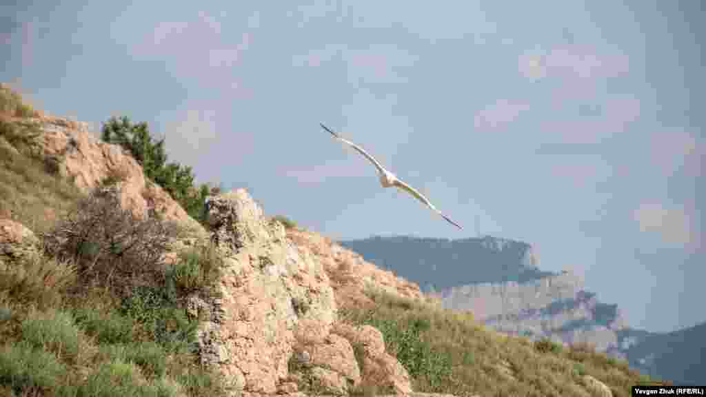 Чайка летит над горой Аскети в Балаклаве | Крымское фото дня