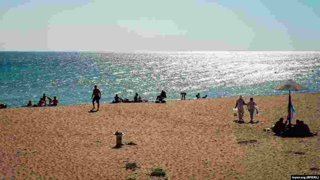После 2014 года трамвай перестал курсировать. Вместо этого в поселке открыли сквер со списанной военной техникой. Корреспондент Крым.Реалии запечатлел отдых в Молочном.