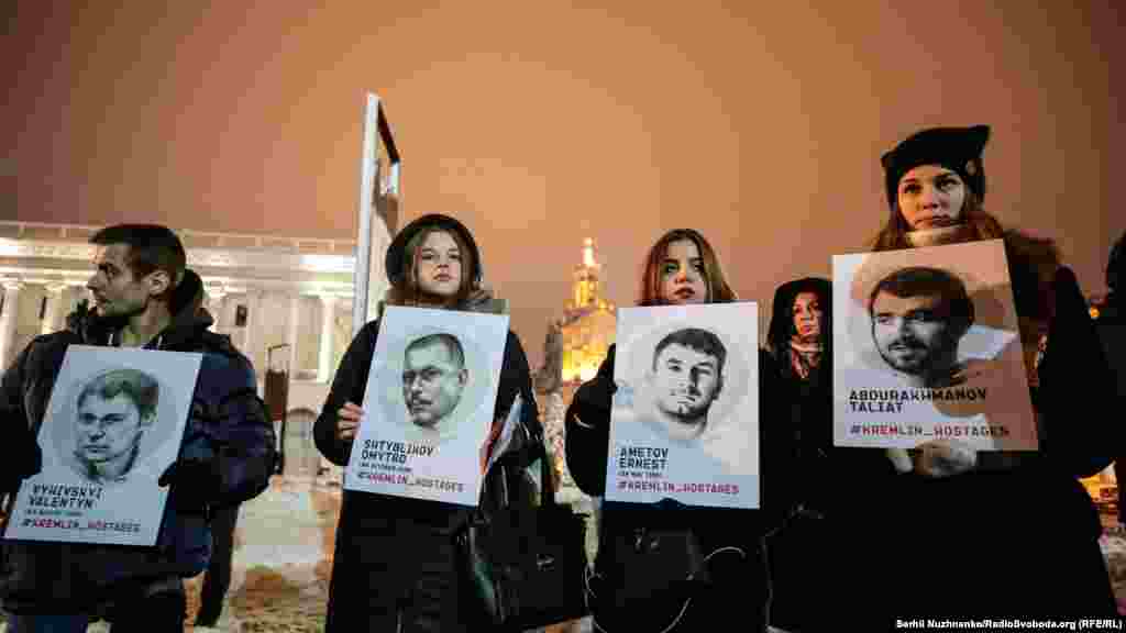 «Помни о тех, кто в плену» – акция под таким названием собрала около сотни участников на столичном Майдане Независимости. Они собрались, чтобы выразить поддержку захваченным ФСБ в Черном море украинским военным и тем, кого незаконно содержат в российских и крымских тюрьмах. Участники акции вышли на Майдан с их портретами.