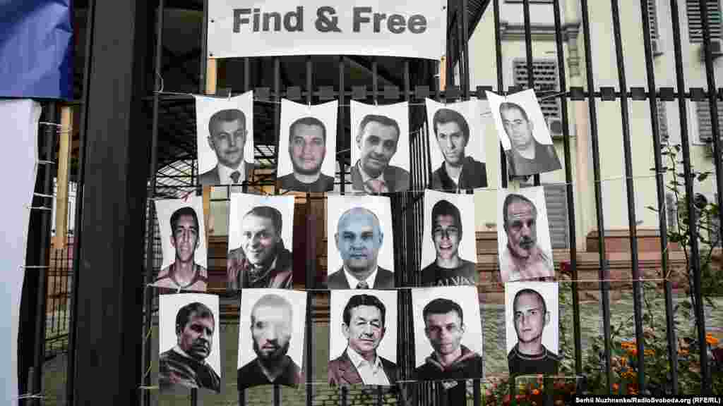 Собравшиеся принесли с собой таблички с именами похищенных крымчан. В их числе был и Эрвин Ибрагимов – член исполкома Всемирного конгресса крымских татар. Неизвестные похитили его в Бахчисарае в мае 2016 года. Камера видеонаблюдения зафиксировала, как два человека в форме российских дорожных инспекторов остановили машину Ибрагимова и затащили его в свой микроавтобус.