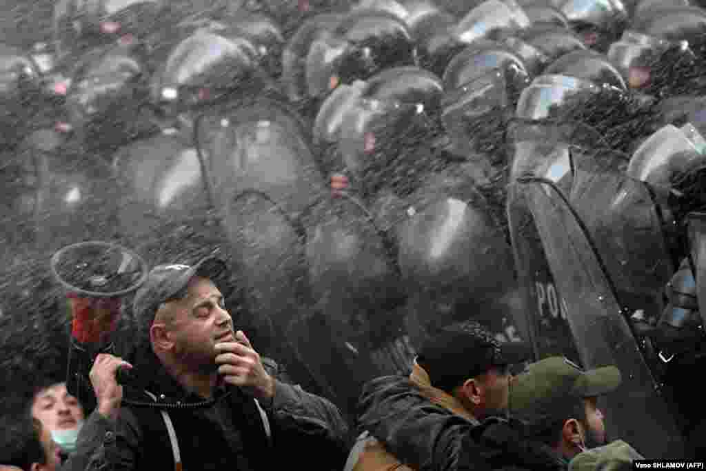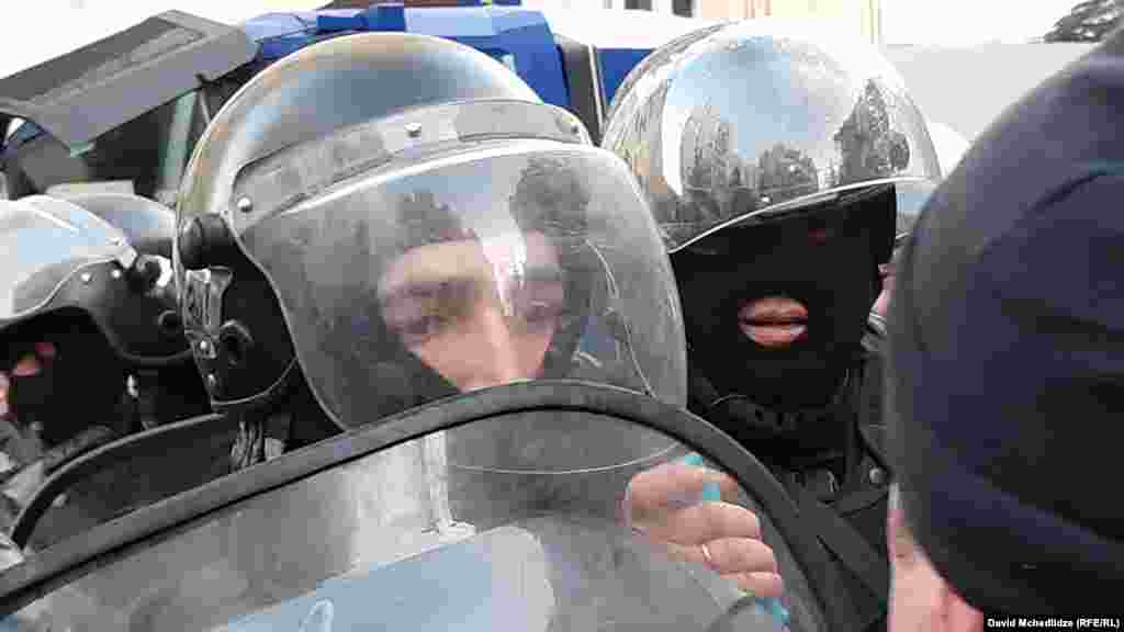 Вечером в понедельник, 18 ноября, полиция начала применять силу против митингующих – в ход пошли водометы. Построившись в плотные ряды, спецназовцы толкали пикетчиков щитами. Постепенно спецназ очистил все улицы, разблокировал входы в парламент и освободил от палаточного городка центральный проспект Руставели.