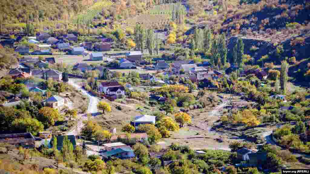 Это место окружено горами, взобравшись на которые можно увидеть красивые пейзажи. Тут, к примеру, берет свое начало горная река Арпат. Однако магнитом для туристов является урочище Панагия – с отвесными скалами и одноименным озером. Водоем известен своим необычным цветом. Корреспондент Крым.Реалии побывал в Зеленогорье в разгар осени, и запечатлел природу села во всем его разноцветье.