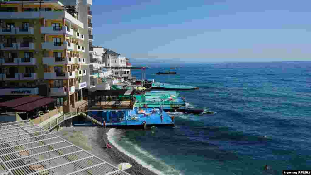 В последнее воскресенье лета корреспондент Крым.Реалии посетил курортный поселок Утес близ Алушты, чтобы запечатлеть его последний летний день в этом году. Отдыхающих встретил мало.