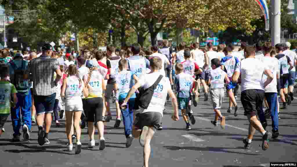 Всероссийское состязание «Кросс нации» состоялось 16 сентября в аннексированном Крыму. В шортах, трусах, футболках и без по центральным улицам Симферополя бежали около двух тысяч человек. Участники выбирали дистанции в полтора, четыре или восемь километров, оценивая свои силы. Ежегодно соревнование проходит в третье воскресенье сентября. Первый раз с российским кроссом крымчане бежали после аннексии полуострова в 2014 году.