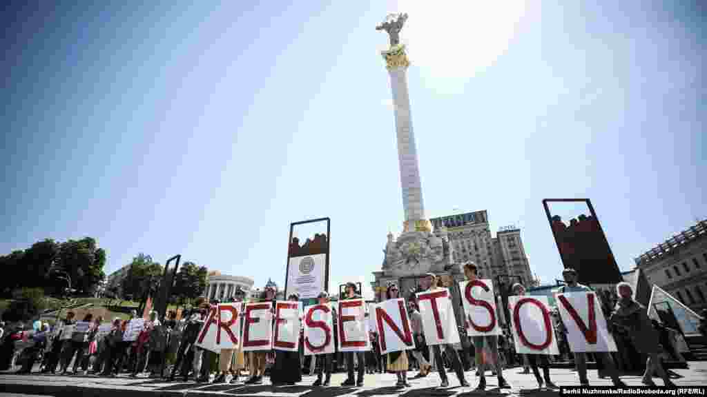 На Майдане Независимости в Киеве прошла акция «Спасем Олега Сенцова» (#SaveOlegSentsov). Основной лозунг акции – «покажи красную карточку Кремлю». Организаторы задумали ее в футбольной тематике, накануне Чемпионата мира, который в этом году будет проходить в России.