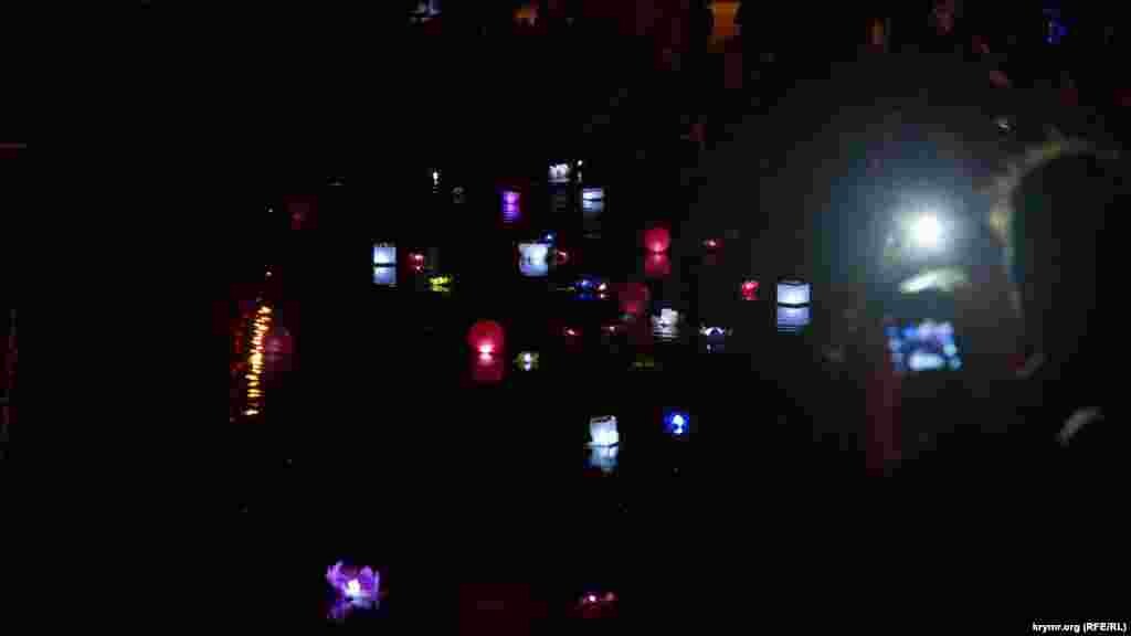 Жители Симферополя запускают фонарики на воду в Гагаринском парке