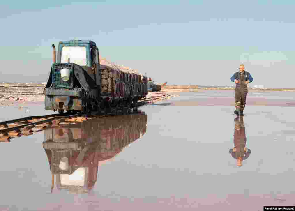 Морская лагуна, известная как озеро Сасык-Сиваш, является источником редкого ресурса – розовой соли. Минерал окрашен крошечными водорослями, которые производят пигмент бета-каротин. Каждую осень сезонные рабочие собирают тысячи тонн розовой соли для переработки и экспорта.