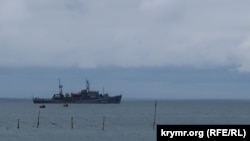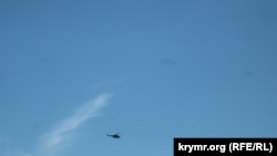 А пока над Феодосией летают вертолеты, а в заливе стоит военное судно.
