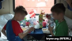 В поезде детей больше, чем взрослых. Едут большими семьями.