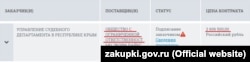 Фирма, получившая госзаказ на 2,6 миллиона рублей, по данным федеральной налоговой службы, зарегистрирована в 2016 году с уставным капиталом в 10 тысяч рублей. Она специализируется на оптовой торговле одеждой и обувью, а также производстве текстильных изделий. Но какой-либо истории ее участия в других крымских тендерах в открытом доступе корреспонденту Крым.Реалии найти не удалось. Попытки связаться с фирмой тоже оказались безуспешными. По ее телефону на звонки не ответили.